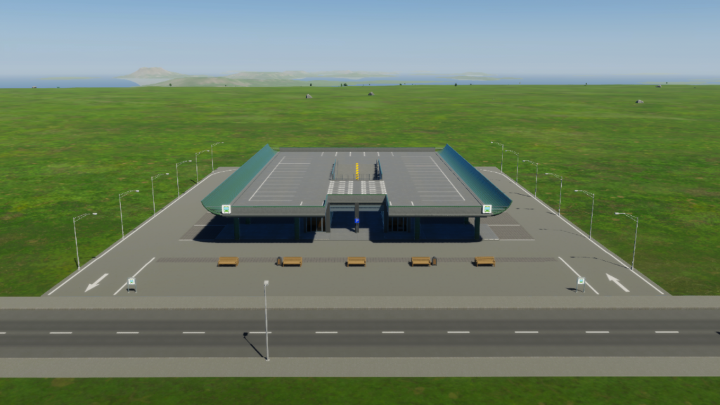 バスが出てくる施設です。一つのバス車庫から25台のバスを出すことができます。若干の大気汚染を発生させますが、無視して住宅地のど真ん中に設置してしまって大丈夫です。