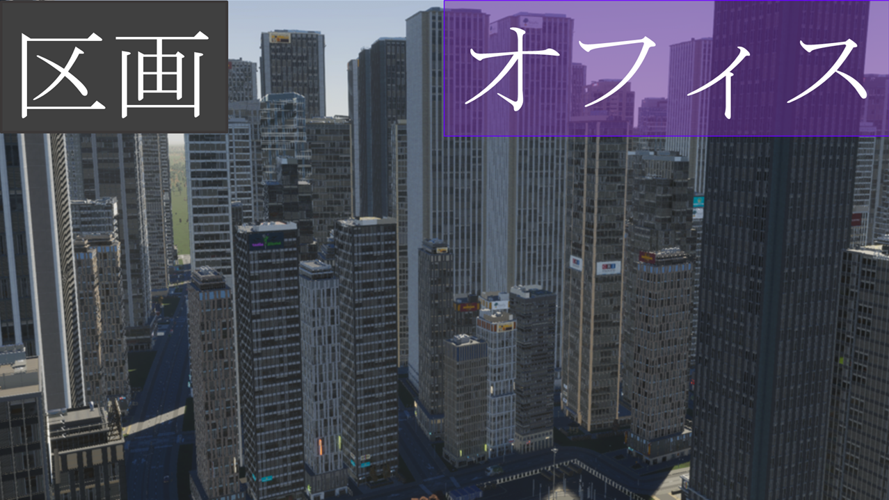 オフィス区画は、名前の通り、オフィスを建設するための区画です。ソフトウェアの販売や、各種サービスを市民に提供します。
