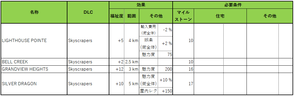 特殊施設は、各建物1つまで建設できます。