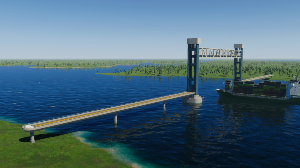 船が通過するとき、航路と交わる部分が上がります。その間、地下鉄の列車は通過できません。