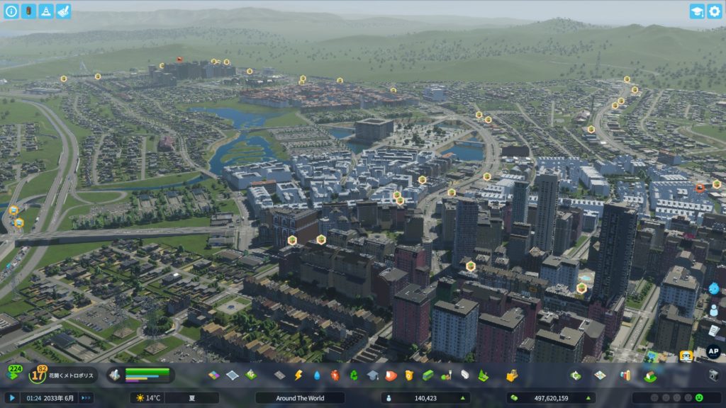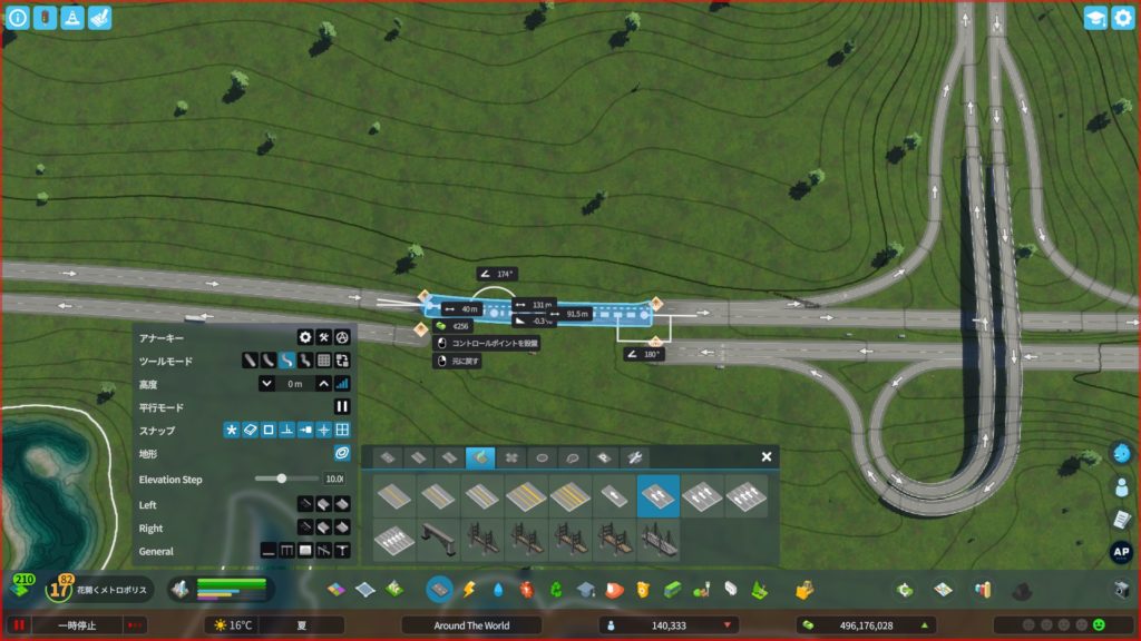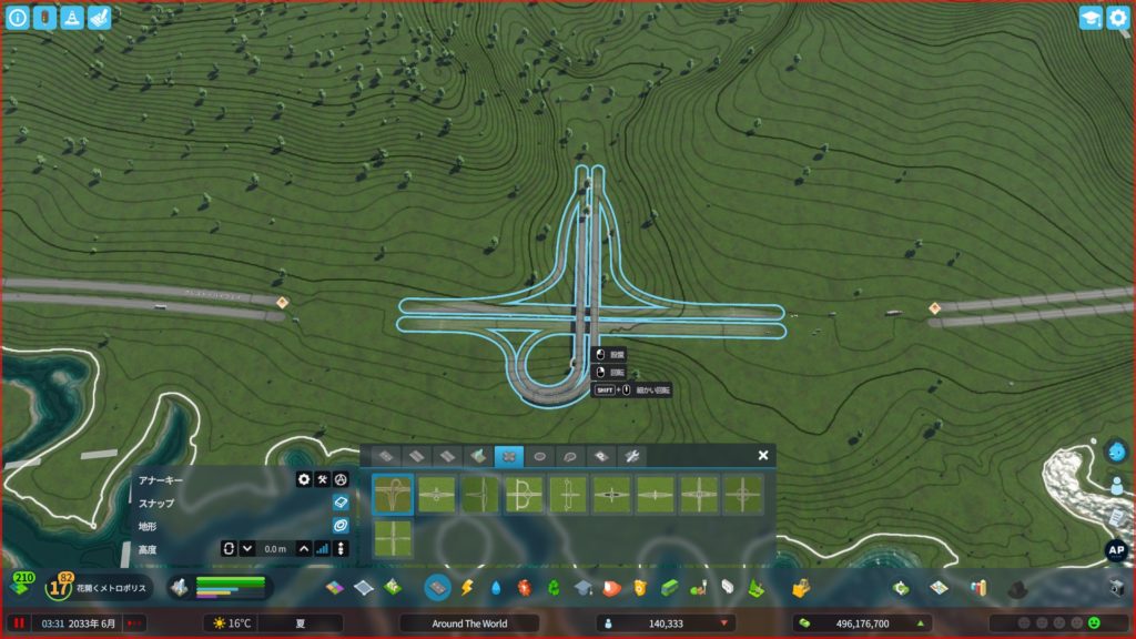 土地を購入したら、道路を敷きましょう。まずは、高速道路から。既存の高速道路を破壊して、インターチェンジを作り、高速道路をつなぎ直します。
