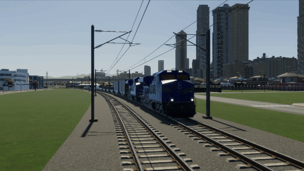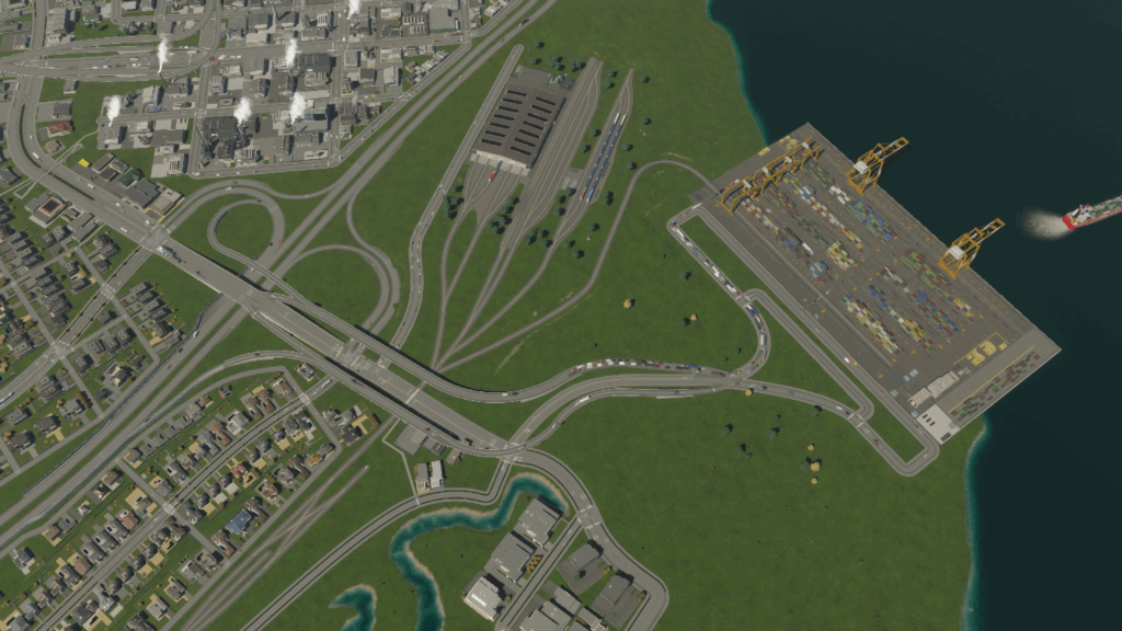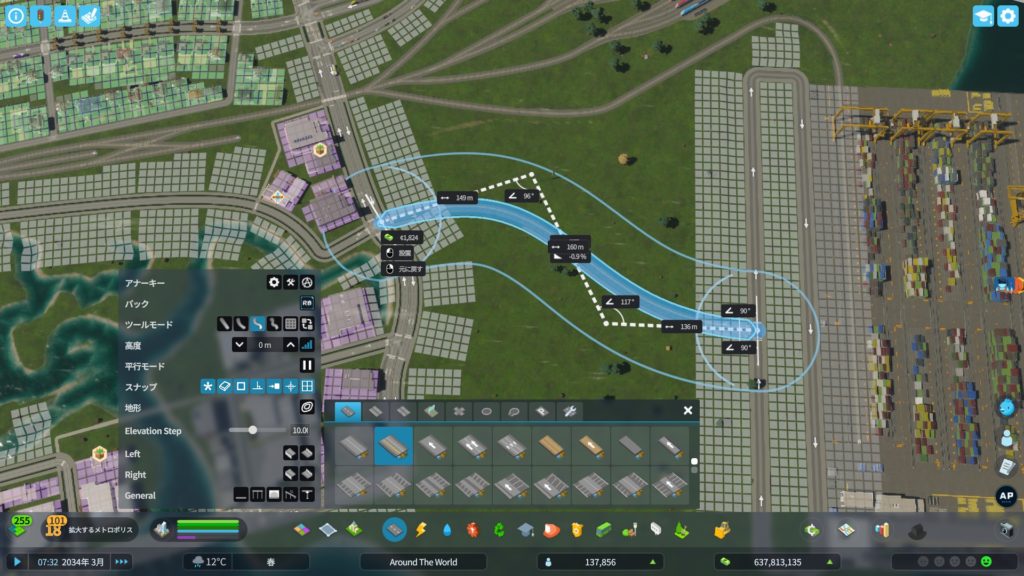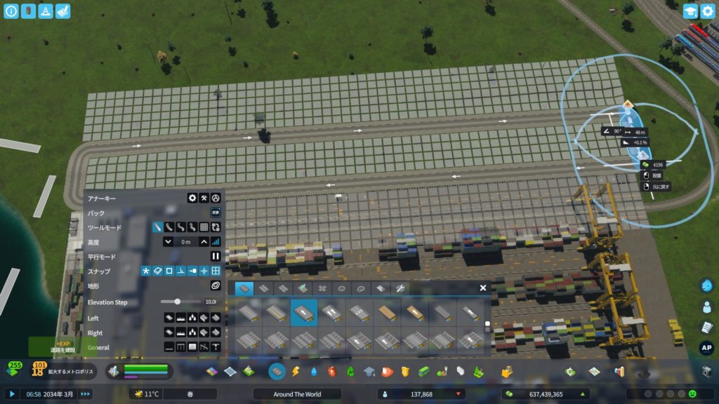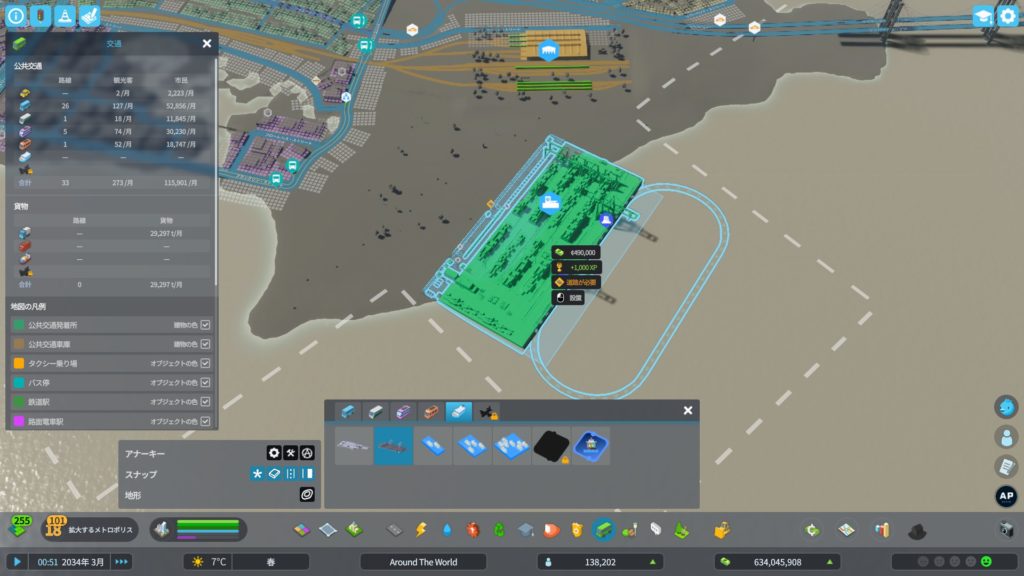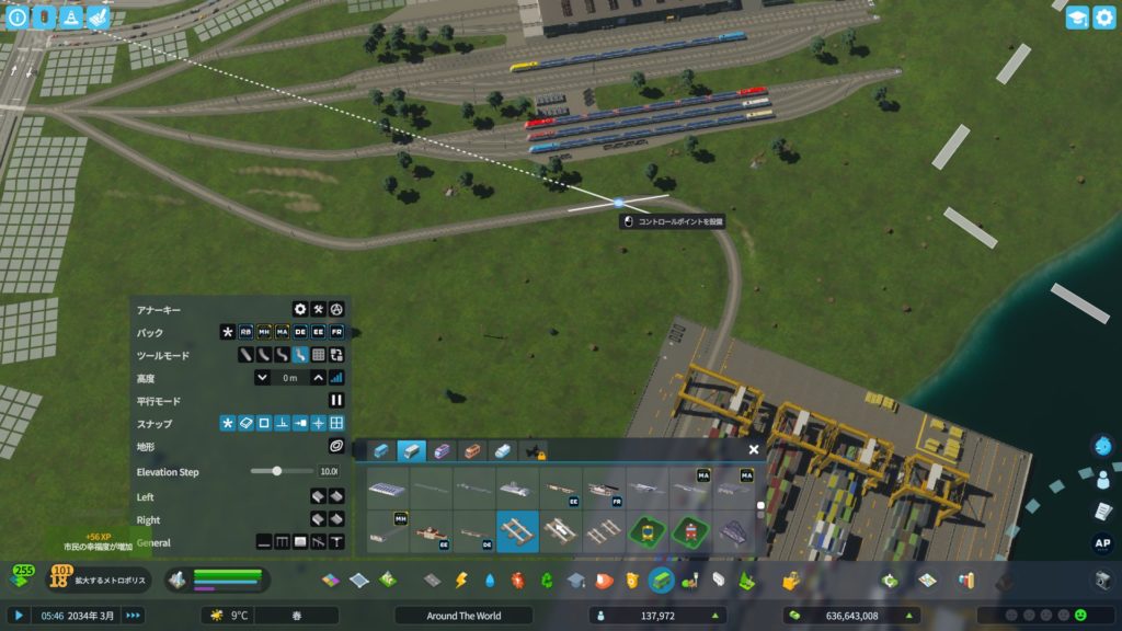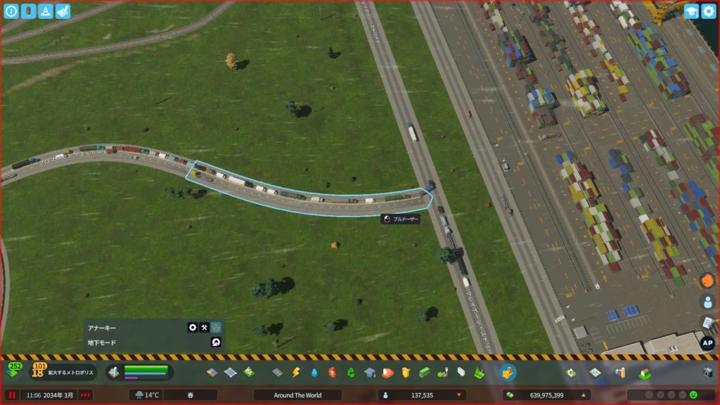 貨物港を建設し、「鉄道連携」のアップグレードをして、貨物鉄道の線路を追加した後、線路を延ばします。