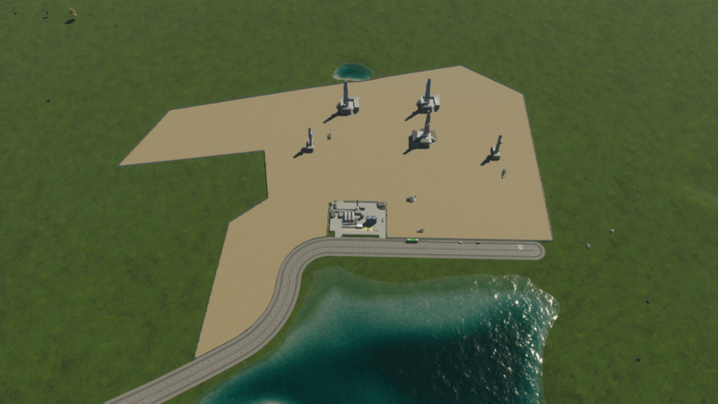 原油が埋まっている場所まで道路を敷いたら(このシーンはカット)、原油を採掘するための施設を設置します。