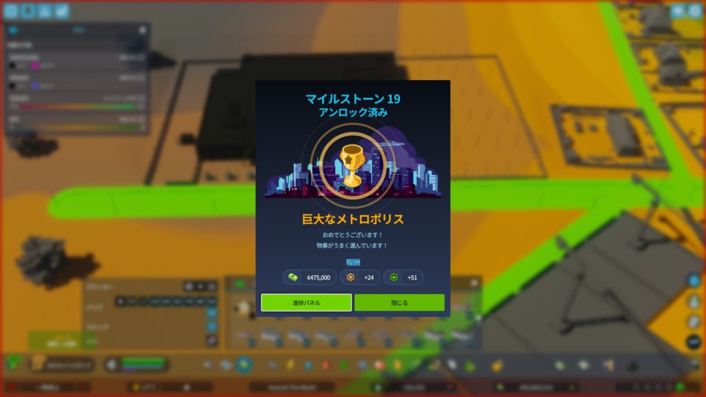 マイルストーン19「巨大なメトロポリス」に到達しました!