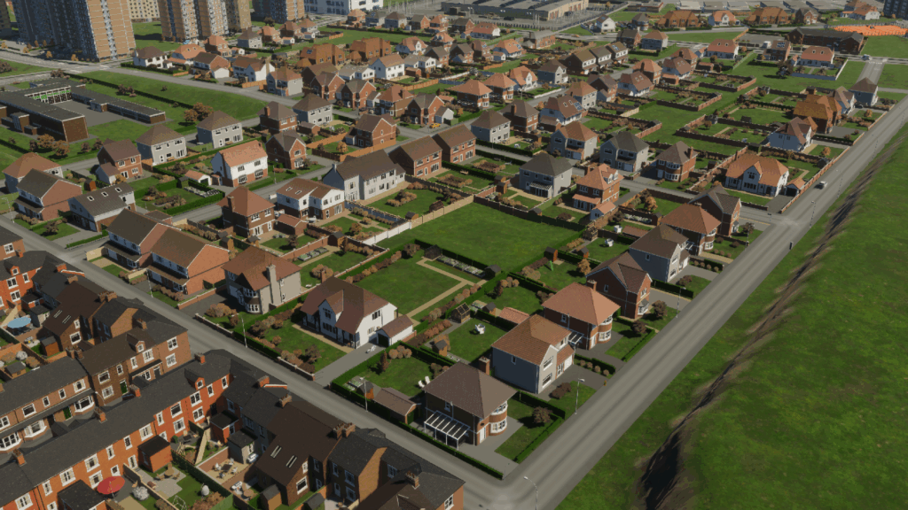 今回の開発では、Region Pack の一つ “UK Pack” を使って、色々な建物を建てていきます。今回の開発は、街づくりメインというよりかは UK Pack で遊ぼうの回です。