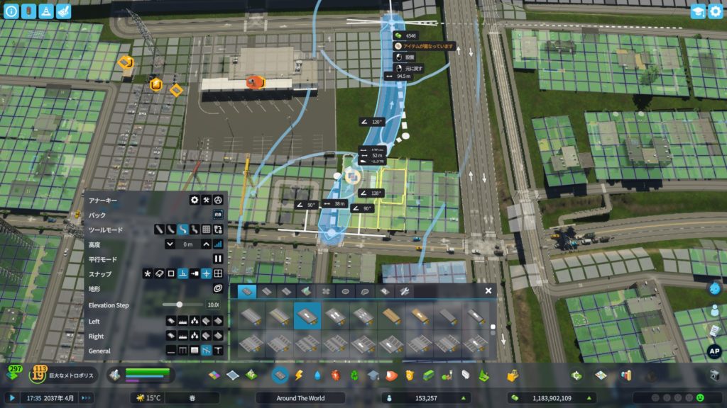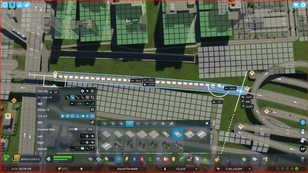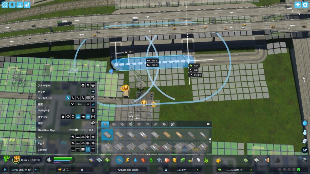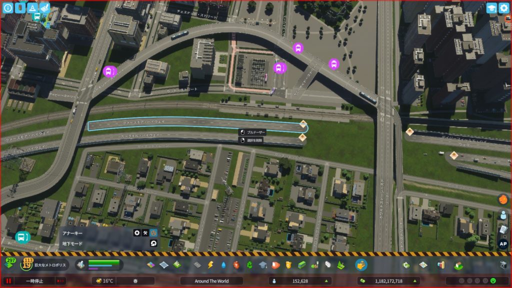 高架の高速道路を作り、駅裏がフリーになったので、駅裏に施設とかを建てていきます。