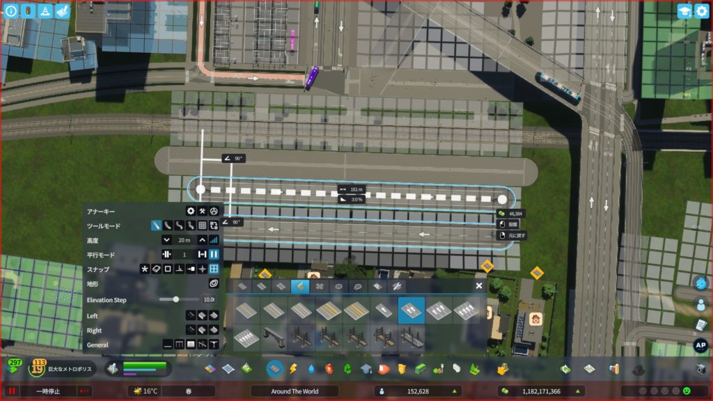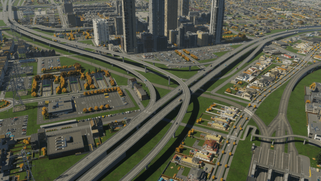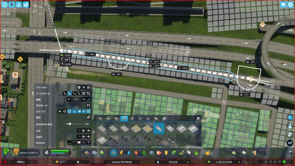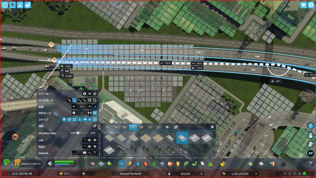 メインの高速道路のジャンクション部分が高架になっているので、高架で敷きなおして正解でした。ジャンクションの高架を生かして、上下でうまく道路を交差させることができました。