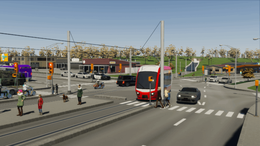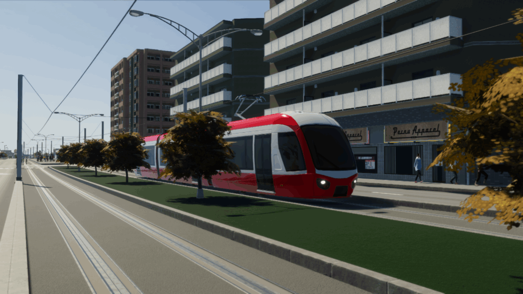 今回の開発では、前回(Part 29)で作った「日本っぽい街」の輸送がキャパオーバーしたので、その対策としてLRTを走らせます。
