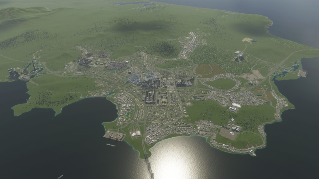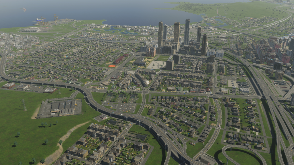 また、この記事を書いている間に、Bridge & PortsやSkyscrapers、Supply Chainsといった各種DLCが大量に出てきて、ゲーム内の輸送形態も変わったので、Region Packで遊ぶことを目的にしたSeason 3の開発はここで打ち切りたいと思います。ということですので、最後に、開発した街を見てみようのコーナーも作ります。