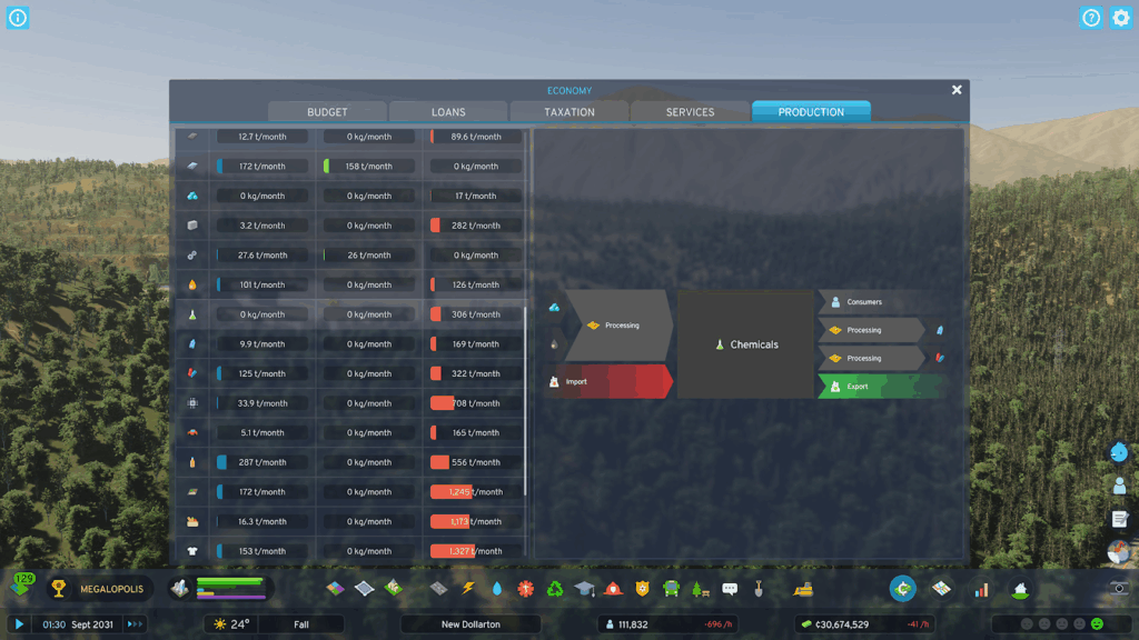 輸送に関するバグがパッチ 1.3.3f1(Peirs & Ports)で修正されたことを踏まえ、「生産」のタブが改良されることになりました。ここで、現在の「生産」のタブを見ていきましょう。